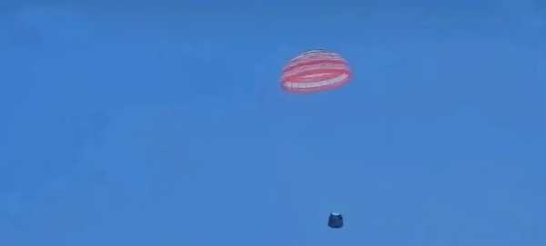 6月25日14時7分,嫦娥六號返回器攜帶來自月背的月球樣品安全著陸在內蒙古四子王旗預定區域,探月工程嫦娥六號任務取得圓滿成功。新華社記者 連振 攝