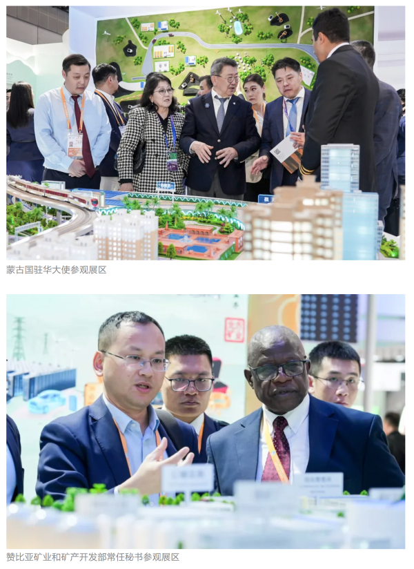 本屆進博會上,蒙古國駐華大使、贊比亞礦業和礦產開發部常任秘書、津巴布韋首席司長等多國政要蒞臨集團公司組展展區,了解有關項目情況。