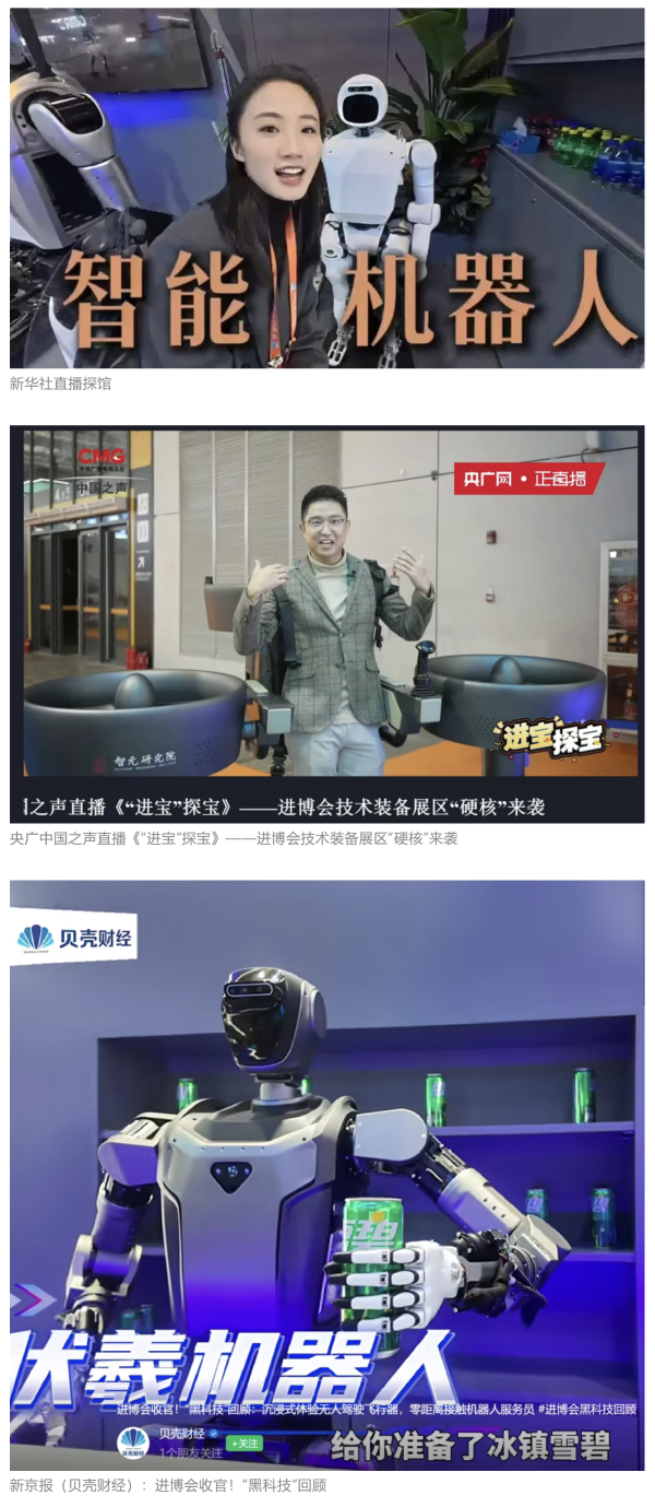 《環球時報》、環球網、《新京報》、《中國旅游報》等對集團公司人形機器人、四足機器人、涵道穿戴式載人飛行器、外骨骼等多型新域新質產品,集中亮相進行報道。新華社、央廣中國之聲、新京報(貝殼財經)、上海廣播電視臺等媒體直播探館,打卡兵器“硬核科技”。